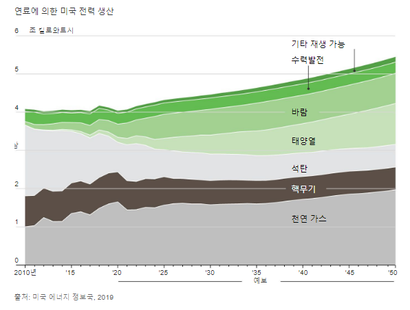 미국은 현재 풍력, 태양열 및 수력 발전과 같은 재생 에너지 자원에서 전력의 20%를 공급받고 있다. 이는 현재 원자력이 공급하고 있는 에너지량과 맞먹는 수치다. 오는 2030년까지 탄소 배출량을 50% 이상 줄이는 것을 목표로 하고 있는 바이든 행정부는 10년내 미국 전력의 80%를 재생에너지로 대체하겠다고 약속했다. 현재 백악관 재생에너지인프라 투자안에는 이미 수십억 달러가 포함돼 있다.