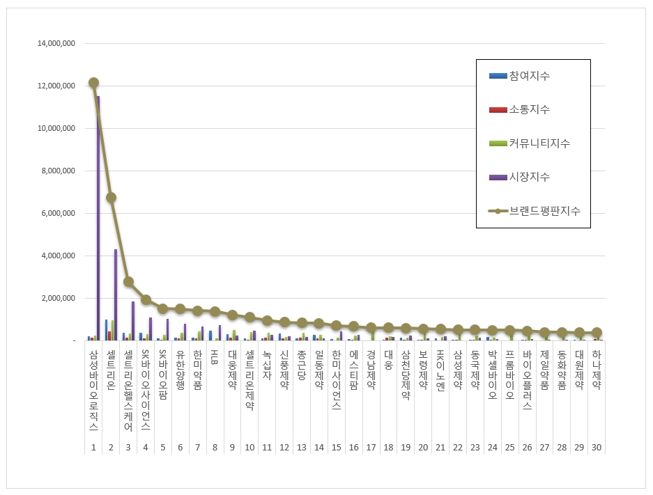 - 삼성바이오로직스, 제약 브랜드평판 1위···셀트리온·셀트리온헬스케어 뒤쫓아