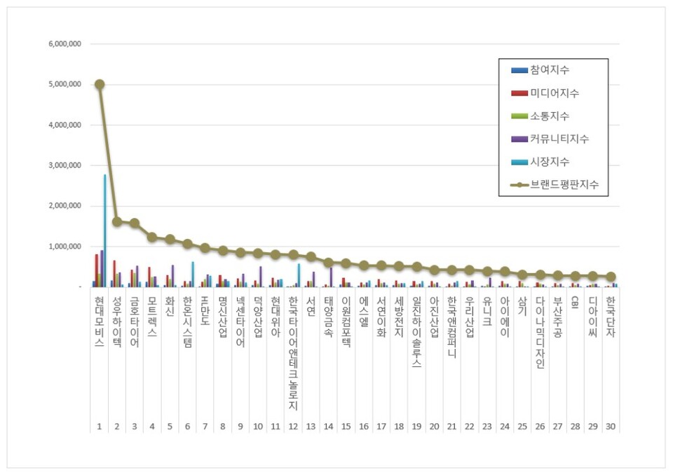 - 현대모비스, 자동차부품 상장기업 브랜드평판 1위···성우하이텍·금호타이어 뒤쫓아