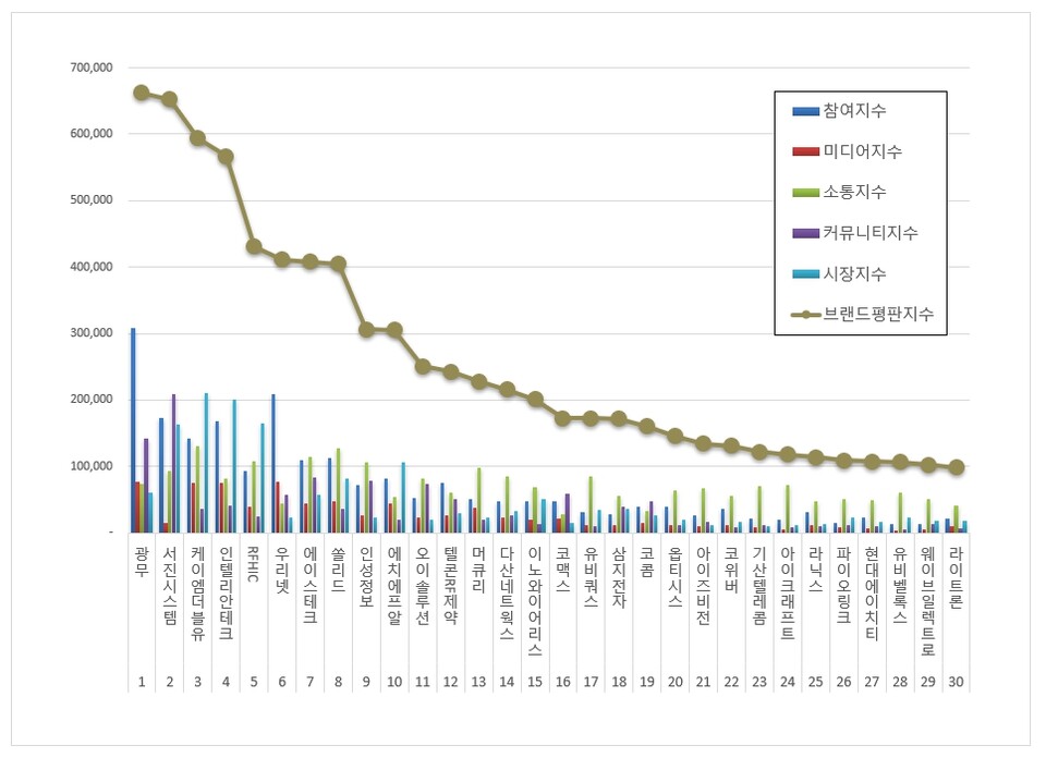 - 서진시스템, 통신장비 브랜드평판 1위···케이엠더블유·에이스테크 뒤쫓아