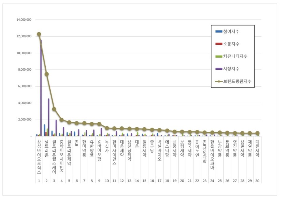 - 삼성바이오로직스, 제약 브랜드평판 1위···셀트리온·셀트리온헬스케어 뒤이어