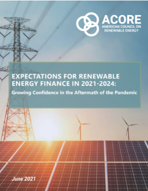 ACORE의 '2021~2024년 신재생에너지 금융투자에 대한 기대'라는 보고서는 대형 금융기관과 신재생에너지 개발기업을 대상으로 조사한 결과 개발자들 사이의 신뢰도가 사상 최고치를 기록하고 있다고 조명했다. 특히 COVID-19 대유행 여파로 해당 분야에 대한 투자 신뢰도가 급격히 상승하고 있다.