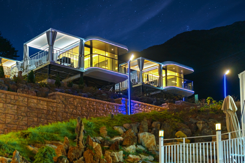 숙소 내부와 야외에는 별빛을 즐기는 휴식 공간과 야외 바비큐장이 마련돼 있어 커플, 가족, 소규모 여행객 모두에게 적합하며, 밤이 되면 은은한 조명과 숲의 고요함이 더해진다.