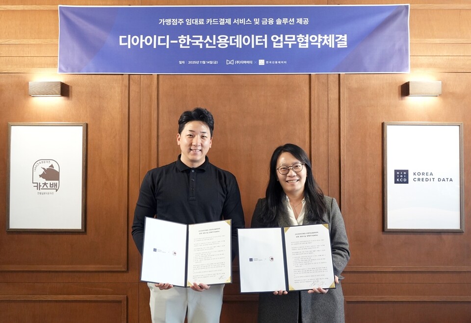디아이디는 2025년 11월 14일(금) 서울 본사에서 캐시노트와 ‘가맹점주 임대료 카드결제 서비스 및 금융 솔루션 제공’을 주요 내용으로 한 업무협약(MOU)을 체결했다. 이번 협약식에는 디아이디와 한국신용데이터 양사 임직원이 참석해 협력 방향과 추진 전략을 논의했다.