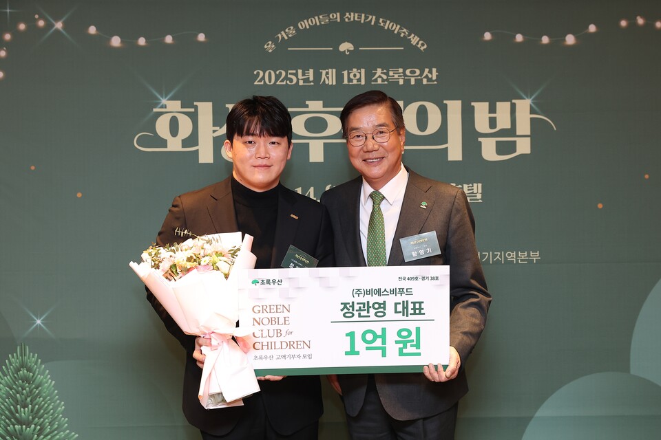 [이넷뉴스] 가맹점과 지역사회가 함께 성장하는 ‘상생 경영’을 실천하고 있는 ㈜비에스비푸드(BSB FOOD, 대표 정관영)가 지난 14일 초록우산 어린이재단이 개최한 ‘제1회 초록우산 화성 후원의 밤’ 행사에서 정관영 대표의 그린노블클럽 헌액식이 진행됐다고 17일 밝혔다.