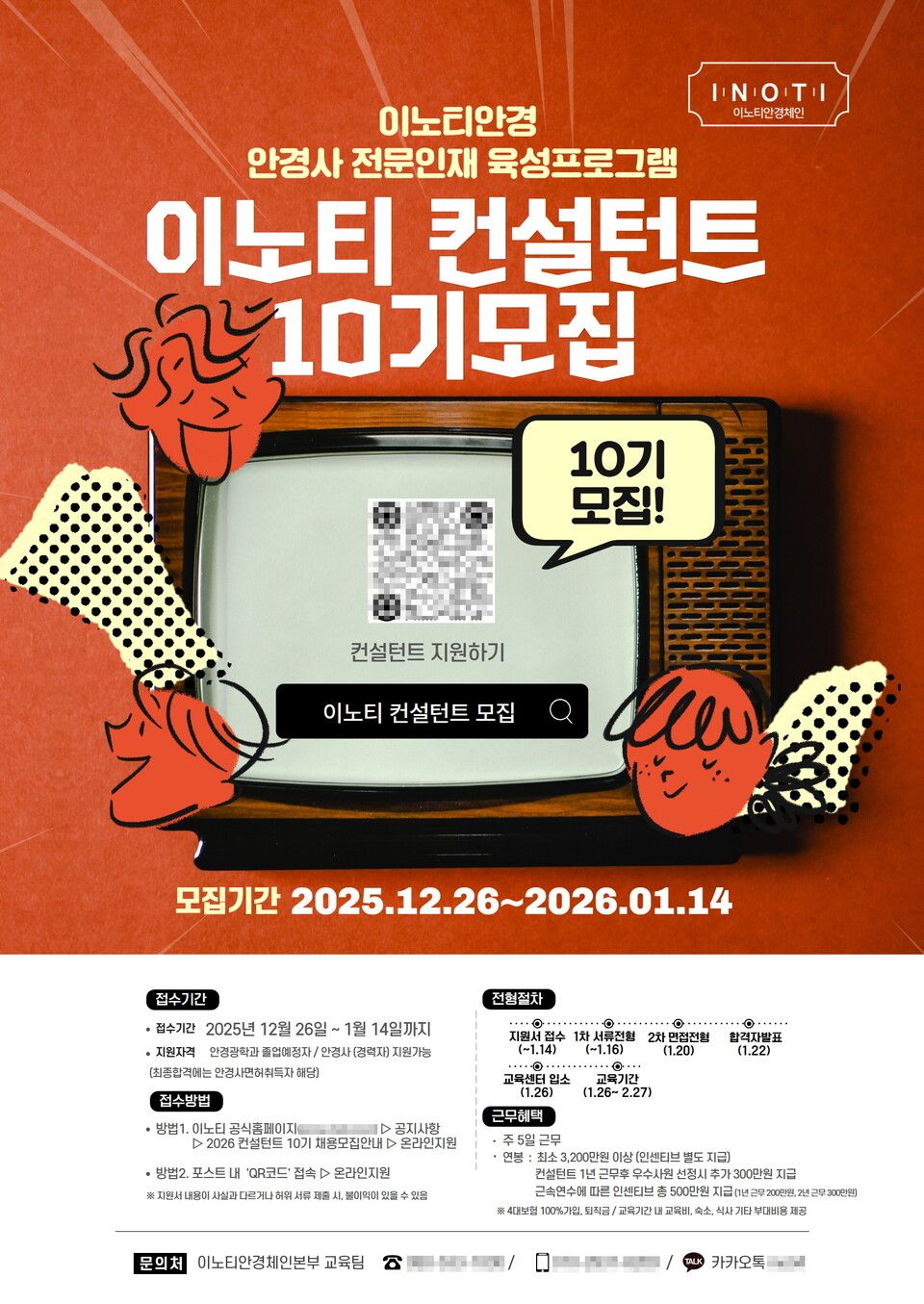 [이넷뉴스] 이노티안경체인(이하 이노티)이 안경 업계의 미래를 이끌어갈 전문 인재 양성을 위해 ‘2025 제10기 아이케어 컨설턴트’를 공개 모집한다고 밝혔다.