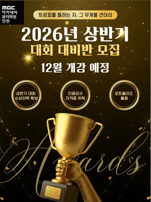 [이넷뉴스] 대한민국 미용 전문 교육의 중심인 MBC아카데미뷰티학원 인천지점이 2026년 상반기 미용기능경기대회 출전을 준비하는 참가자들을 위해 마련한 ‘대회 대비반’을 오는 12월 개강하며 수강생 모집에 나선다고 밝혔다.