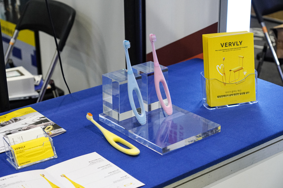 바이러스디자인이 개발한 칫솔 ‘버블리(VERVLY)’ 양치가 어려운 발달장애인을 대상으로 보호자가 효율적으로 양치를 수행할 수 있도록 설계된 칫솔이다.