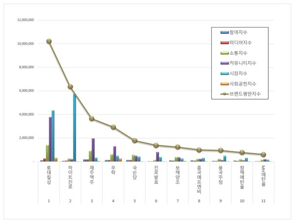 브랜드평판지수는 소비자들의 온라인 습관이 브랜드 소비에 큰 영향을 끼친다는 것을 찾아내 브랜드 빅데이터 분석을 통해 만들어진 지표다. 브랜드에 대한 긍·부정 평가, 미디어 관심도, 소비자의 참여와 소통량, 소셜에서의 대화량, 시장평가, 사회가치활동으로 측정된다. 정성적인 분석 강화를 위해서 ESG 관련지표와 오너리스크 데이터도 포함했다.