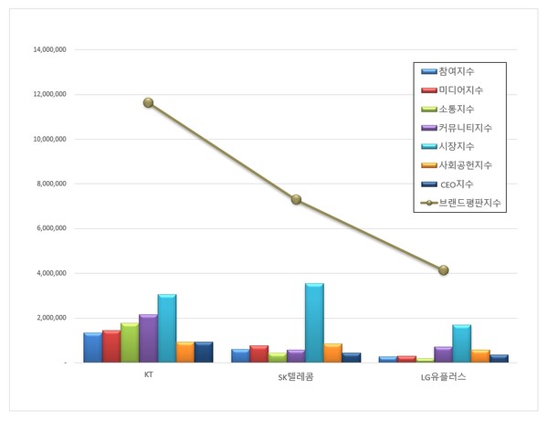 - KT, 6월 통신 브랜드평판 1위 차지···SK텔레콤·LG유플러스 뒤이어