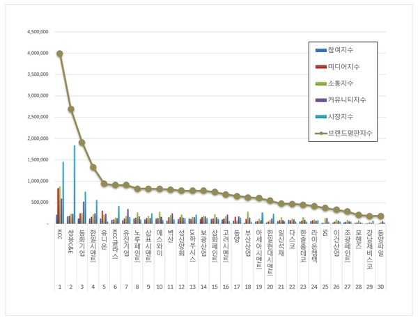 - KCC, 건축자재 10월 브랜드평판 1위···동화기업·쌍용C&E 뒤쫓아