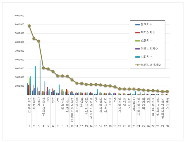한편, 이넷뉴스 에너지 톱 브랜드위원회와 한국기업평판연구소는 매달 국내 에너지 기업 및 브랜드 평판지수를 측정해 변화량을 발표하고 있다. 국내 에너지 업계 현황을 파악하고, 에너지 산업을 전망하는 데 중요 지표가 되고 있다는 평가를 받고 있다.