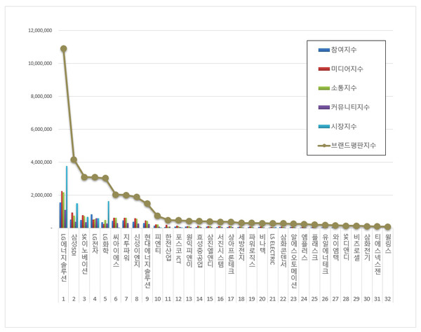 한편, 이넷뉴스 에너지 톱 브랜드위원회와 한국기업평판연구소는 매달 국내 에너지 기업 및 브랜드 평판지수를 측정해 변화량을 발표하고 있다. 국내 에너지 업계 현황을 파악하고, 에너지 산업을 전망하는 데 중요 지표가 되고 있다는 평가를 받고 있다.