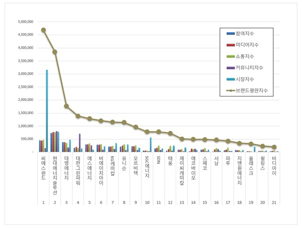 한편, 이넷뉴스 에너지 톱 브랜드위원회와 한국기업평판연구소는 매달 국내 에너지 기업 및 브랜드 평판지수를 측정해 변화량을 발표하고 있다. 국내 에너지 업계 현황을 파악하고, 에너지 산업을 전망하는 데 중요 지표가 되고 있다는 평가를 받고 있다.