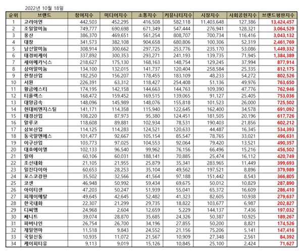 이넷뉴스와 한국기업평판연구소는 비철금속 상장기업 브랜드에 대해서 빅데이터 분석을 활용한 브랜드 평판조사를 실시하였다. 2022년 9월 18일부터 2022년 10월 18일까지의 비철금속 상장기업 브랜드 빅데이터 37,702,530개를 분석하여 소비자들의 브랜드 평판을 분석하였다. 지난 9월 비철금속 상장기업 브랜드 빅데이터 39,846,087개와 비교하면 5.38% 줄어들었다.