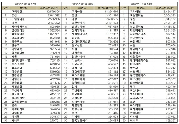 [이넷뉴스] 2022년 10월 비철금속 관련 상장기업 브랜드평판이 공개됐다.