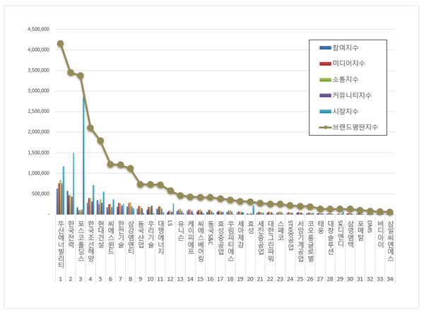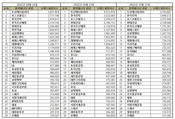 한편, 이넷뉴스 에너지 톱 브랜드위원회와 한국기업평판연구소는 매달 국내 에너지 기업 및 브랜드 평판지수를 측정해 변화량을 발표하고 있다. 국내 에너지 업계 현황을 파악하고, 에너지 산업을 전망하는 데 중요 지표가 되고 있다는 평가를 받고 있다.