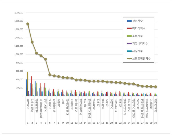 - 휴마시스, 의료기기 브랜드평판 1위···한국비엔씨·오스템임플란트 상위권