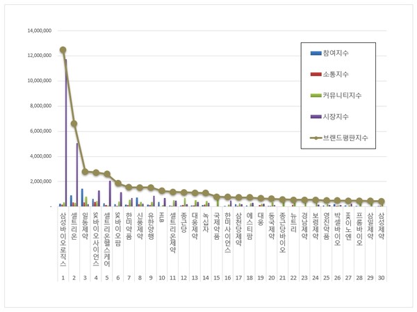 - 삼성바이오로직스, 제약 브랜드평판 1위···셀트리온·셀트리온헬스케어 뒤쫓아