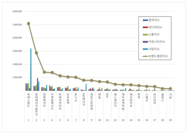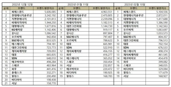 한편, 이넷뉴스 에너지 톱 브랜드위원회와 한국기업평판연구소는 매달 국내 에너지 기업 및 브랜드 평판지수를 측정해 변화량을 발표하고 있다. 국내 에너지 업계 현황을 파악하고, 에너지 산업을 전망하는 데 중요 지표가 되고 있다는 평가를 받고 있다.