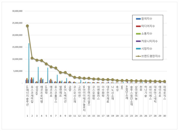 한편, 이넷뉴스 에너지 톱 브랜드위원회와 한국기업평판연구소는 매달 국내 에너지 기업 및 브랜드 평판지수를 측정해 변화량을 발표하고 있다. 국내 에너지 업계 현황을 파악하고, 에너지 산업을 전망하는 데 중요 지표가 되고 있다는 평가를 받고 있다.