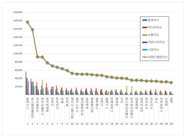 - 휴마시스, 의료기기 브랜드평판 1위···한국비엔씨·오스템임플란트 상위권